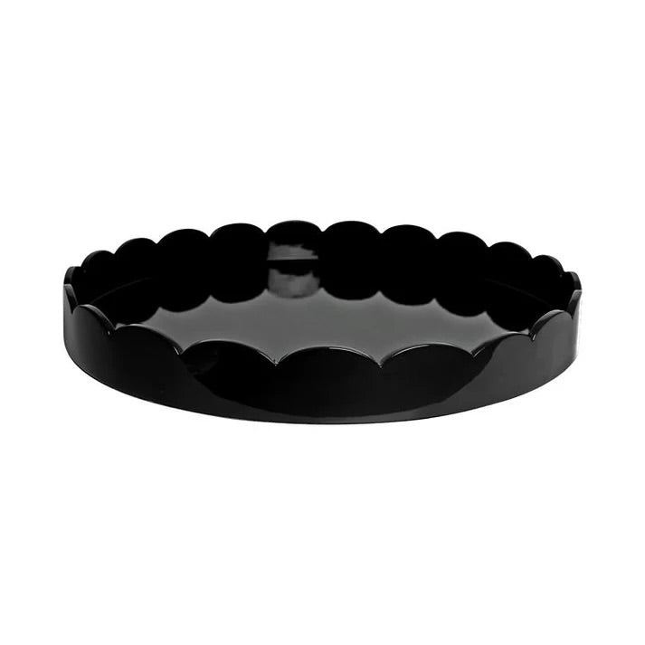 This Round White Medium Scalloped Tray is finished with 20 coats of high gloss lacquer,...
