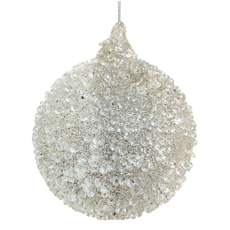 Clear + Silver Bead Glitter Ball Ornament