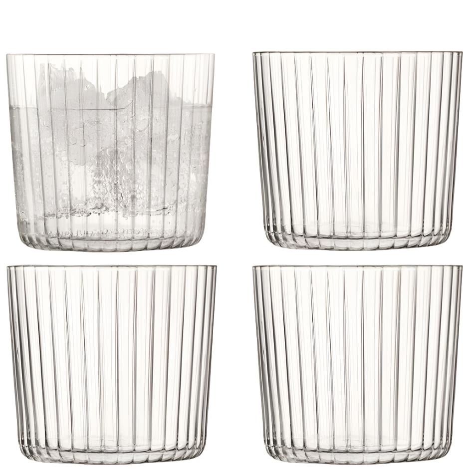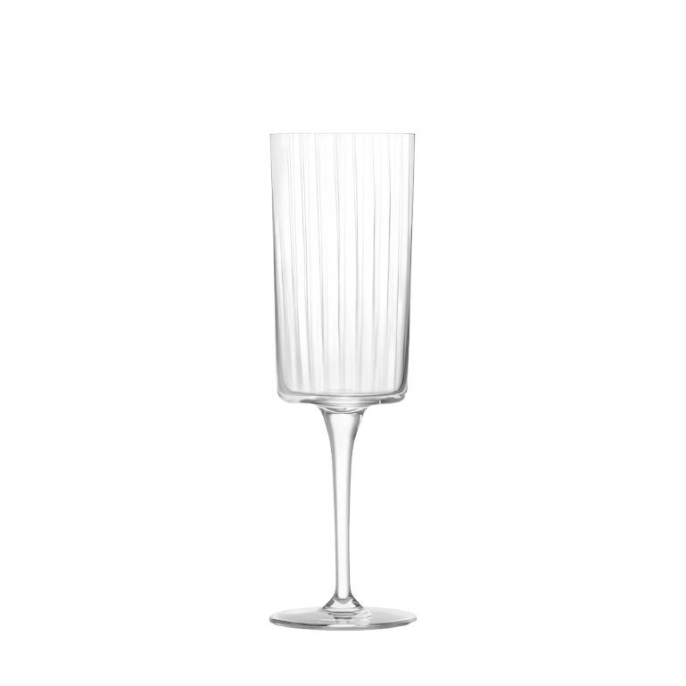 A set of four flutes with fine textured walls, a modern shape and casual stems....
