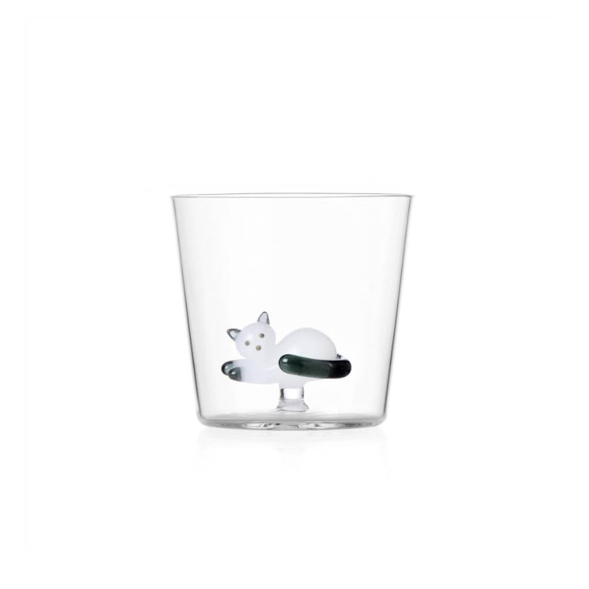 Lying down White Cat with Smoke Tail Tumbler - by Ichendorf Milano