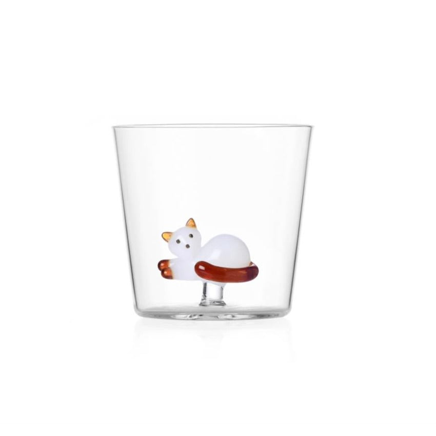 Lying Amber Cat with White Tail Tumbler - by Ichendorf Milano