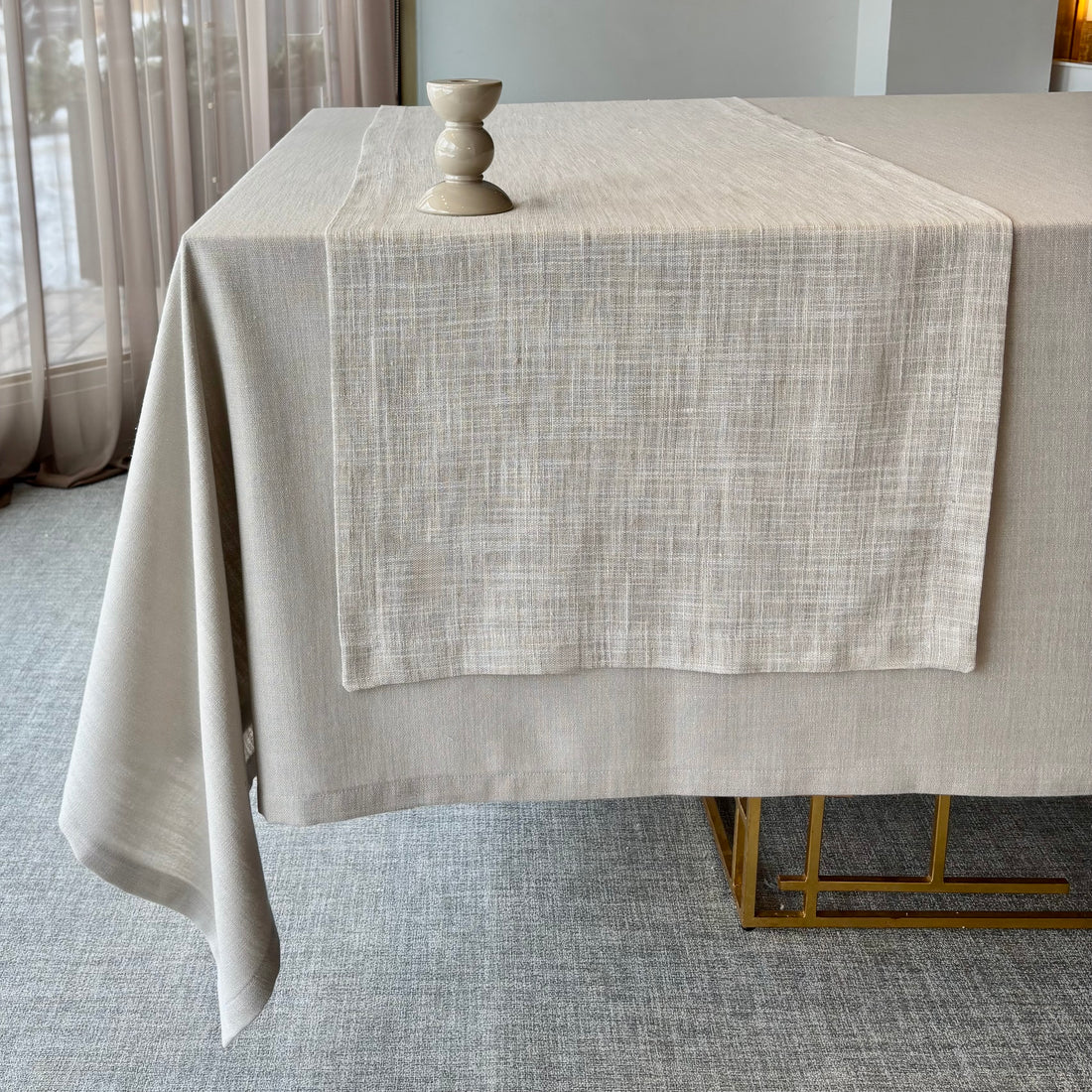 Define your table top with the layering of runners, lengthwise and across to create clean...