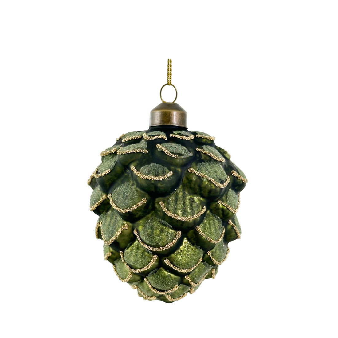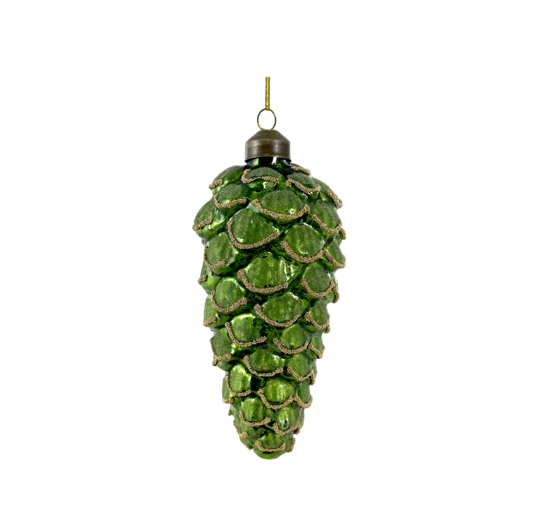 Green Antique Beaded Cone Ornament