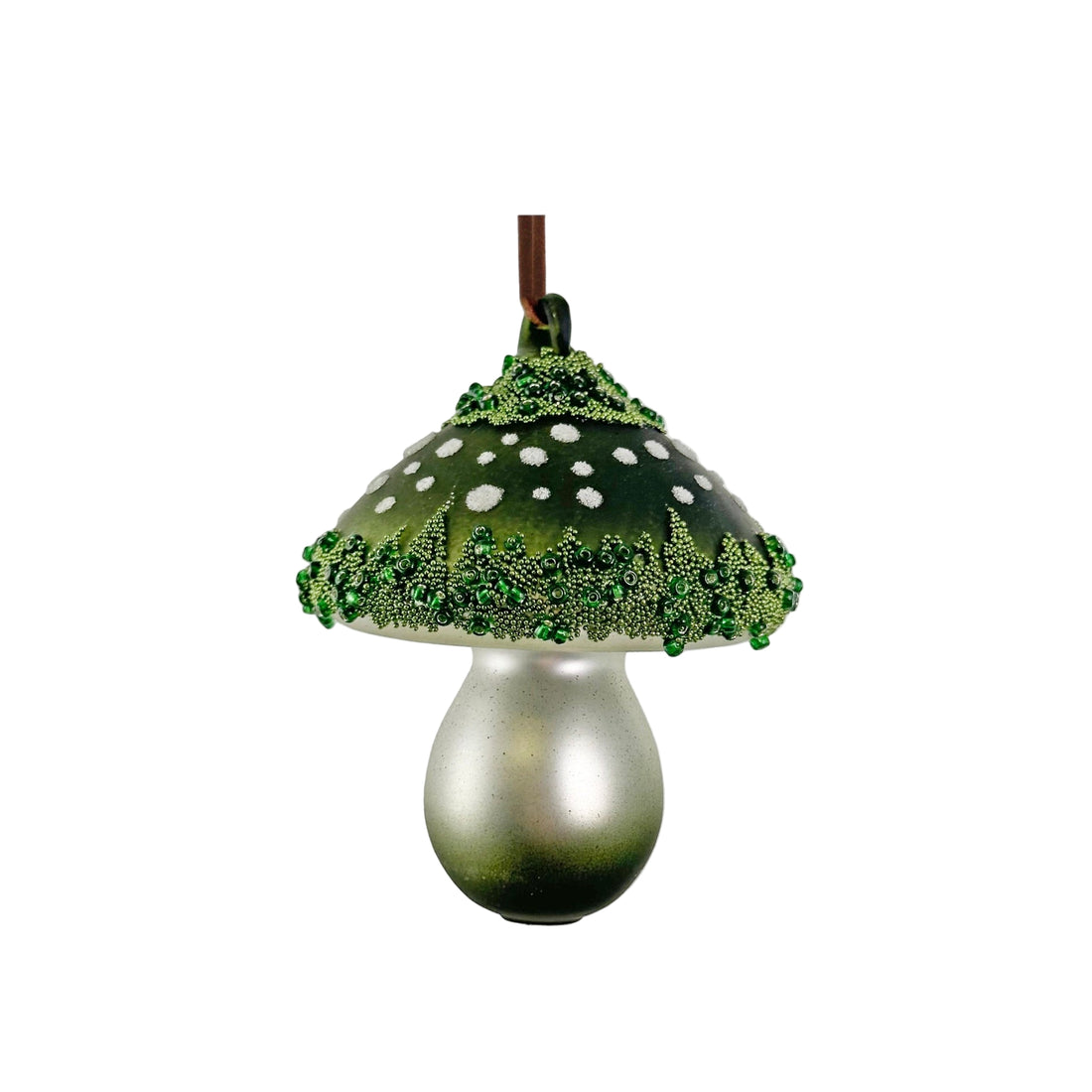 Green Beaded Mushroom Ornament