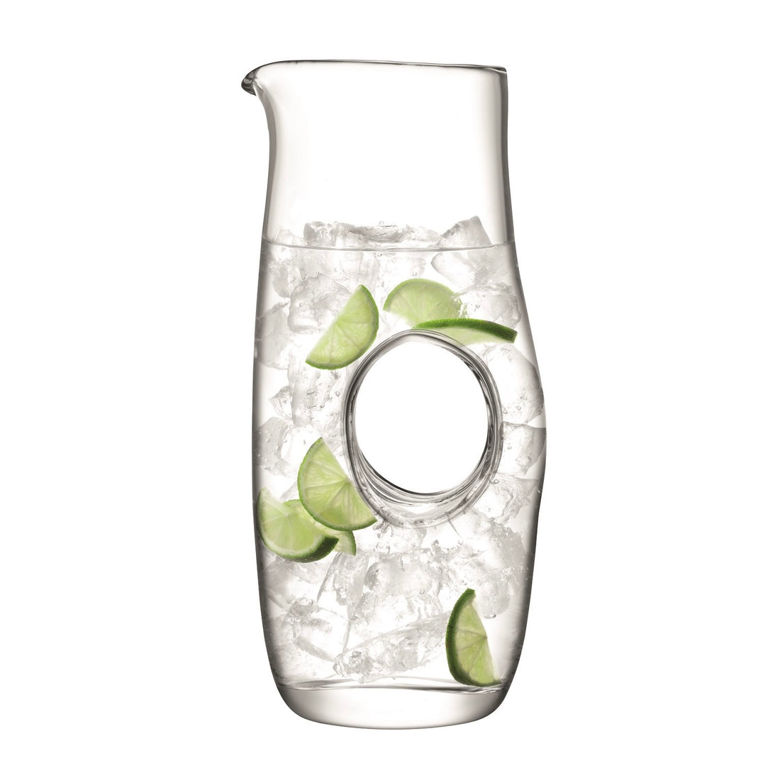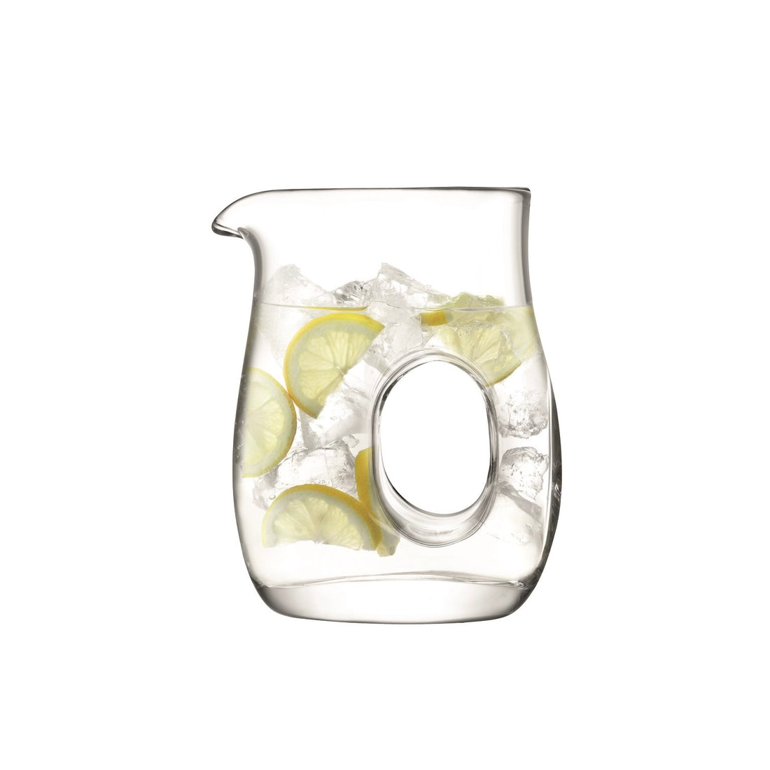 A sculptural handmade jug with eliptical hole in the middle. Molten Glass is pressed into...