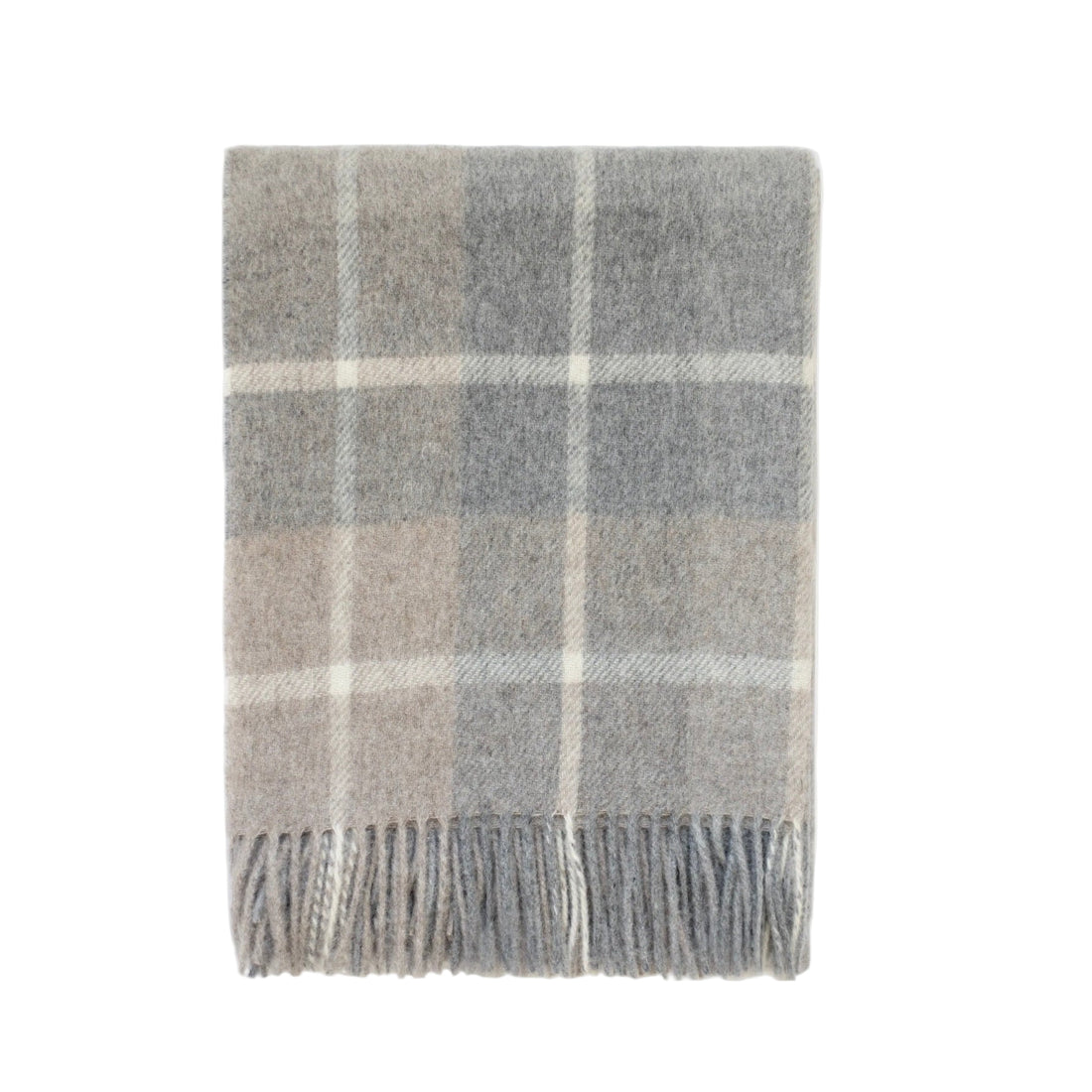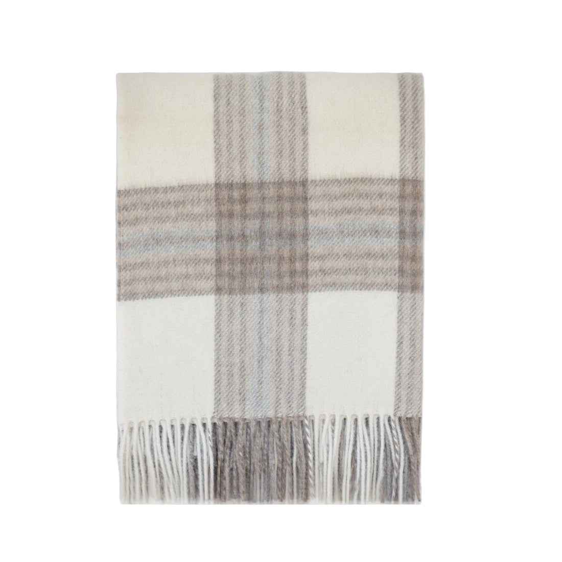 Light Grey, Ivory + Tan Plaid Glencoe Throw