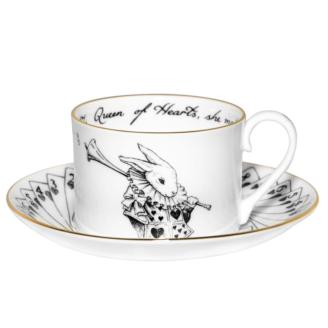 Alice in Wonderland White Rabbit with Cards Tea Cup + Saucer