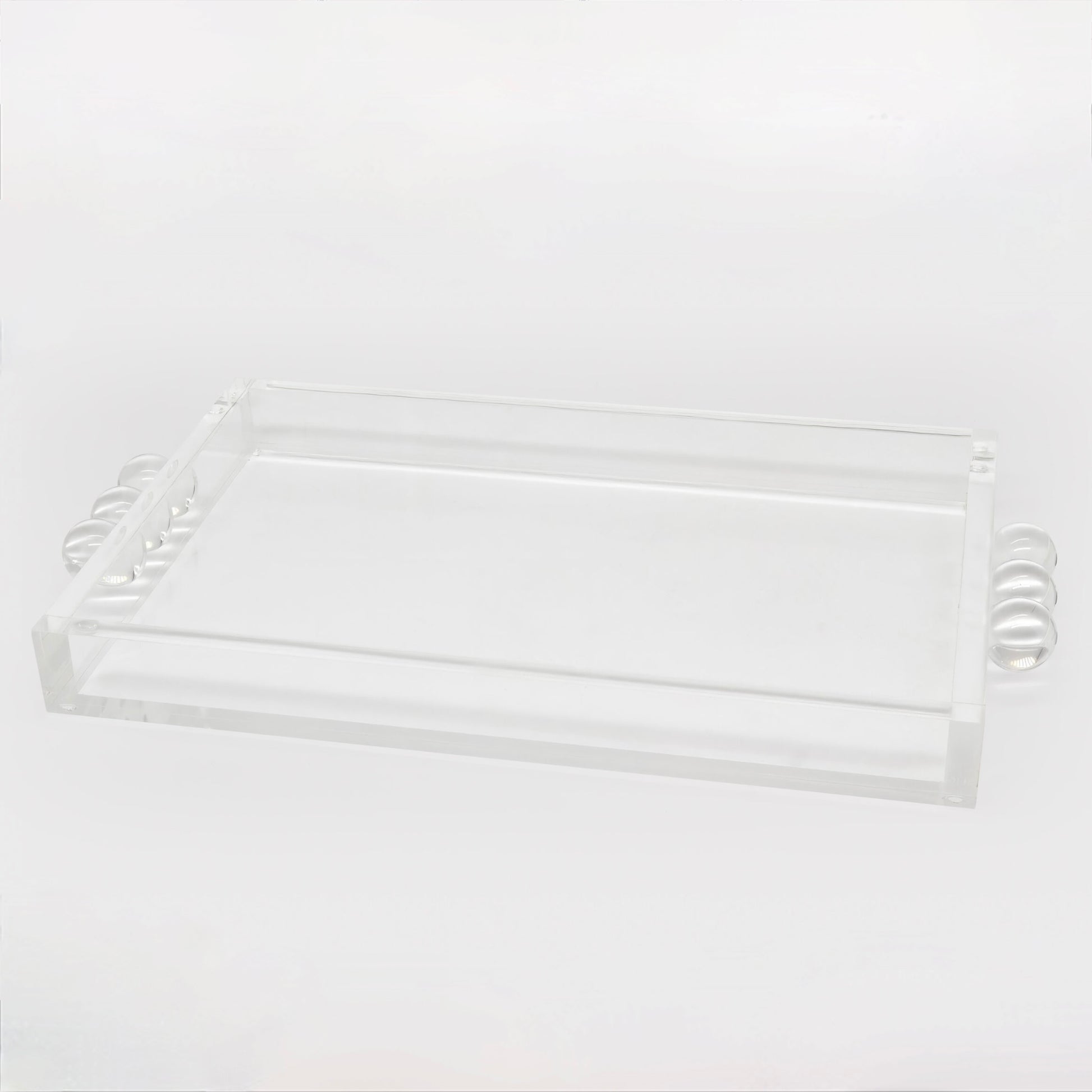 Add a contemporary flair to your living space with this modern essential that seamlessly combines form and function. Featuring unique bubble handles, this tray not only provides functionality but also serves as a stylish statement piece. Its versatility knows no bounds.