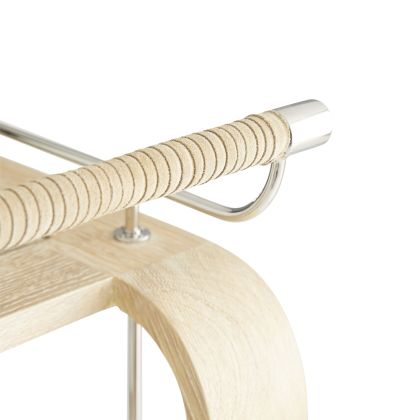 The Brays Bar Cart was inspired by a vintage one designer Beth Webb admired in the living room of the elegant New York institution, The Lowell Hotel. Made of bleached wood and a leather wrapped handle the bar cart looks at home in town and country.Its three tiers and refined proportions offer storage for everything a proper bar needs. The Brays Bar Cart moves nimbly across the floor, the ideal cocktail party companion!