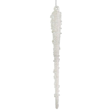 Bring sparkle and sophistication to your décor with a Clear Glass Icicle Ornament, delicately dusted with glitter. Perfect for adding a touch of elegance to your holiday tree, wreath, or as a chic accent in any seasonal display.