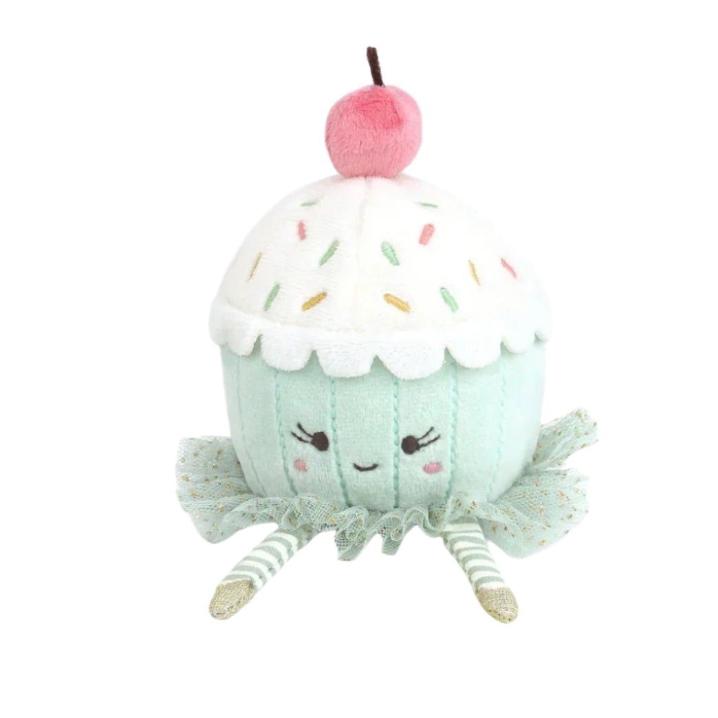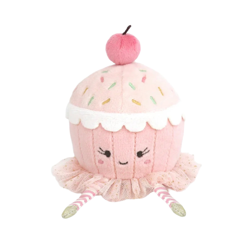 Meet the Dancing Cupcake the sweetest in town! A plush cupcake, frosted with joy, each topped with a soft red cherry that adds the perfect finishing touch. One sports strawberry frosting, the other vanilla, and both have big, embroidered smiles that light up any room!