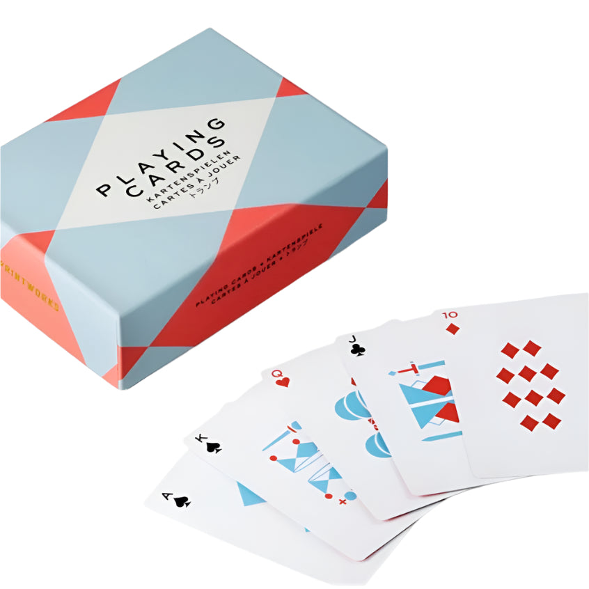 Playing Cards with new aesthetic twist. With a sober palette and distinct graphics these playing cards guarantees to give a playful colour injection to any home interior and looks equally good played or displayed.