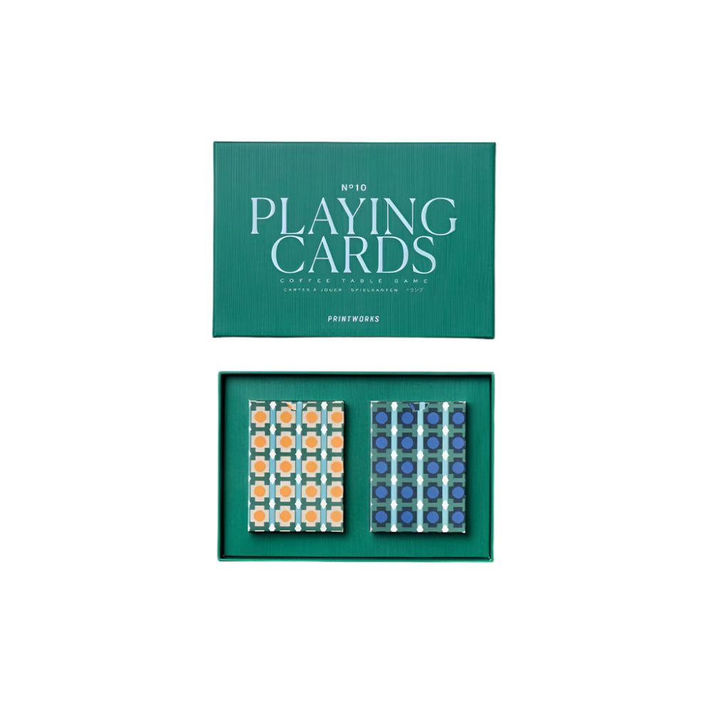 Playing Cards with a stylish twist. Showcasing a sophisticated colour palette and unique graphics, these cards bring a vibrant touch to any home interior, making them perfect for both gameplay and display. As a bonus, this set includes two decks of cards, doubling your fun and enjoyment.