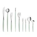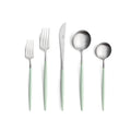 Set consists of dinner knife, dinner fork, table spoon, dessert fork and dessert spoon.