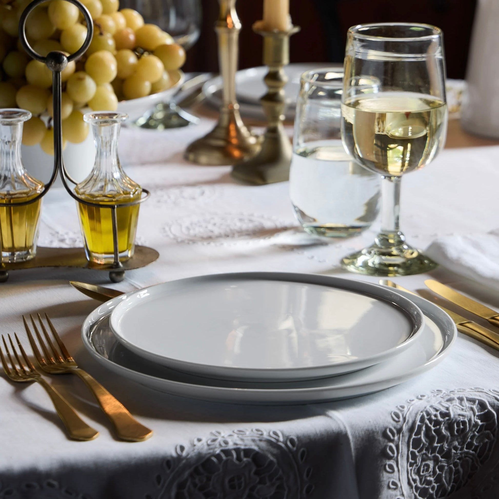 Lightweight and durable, with a glossy white surface ideal for food presentation. Designed as a mix & match collection, to be layered with coloured stoneware for a striking tablescape.