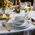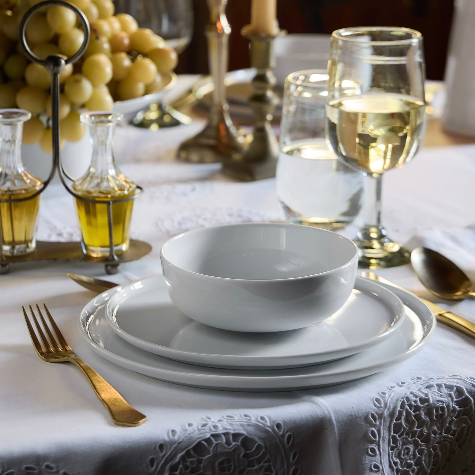 Lightweight and durable, with a glossy white surface ideal for food presentation. Designed as a mix & match collection, to be layered with coloured stoneware for a striking tablescape.