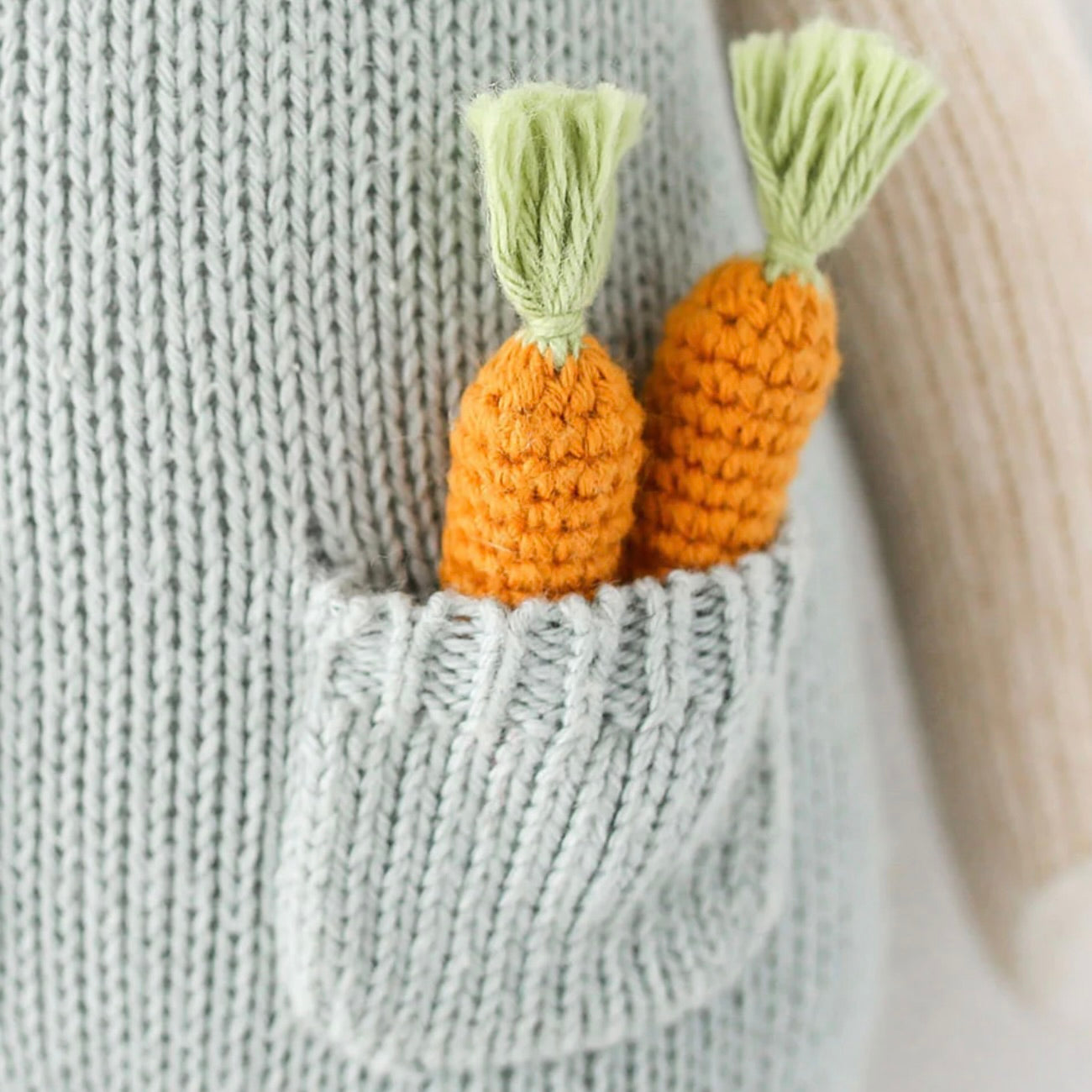 Hand knit with premium 100% cotton yarn with premium felt and knit details. Each doll is stuffed with hypoallergenic polyfill to be the ideal cuddle weight.