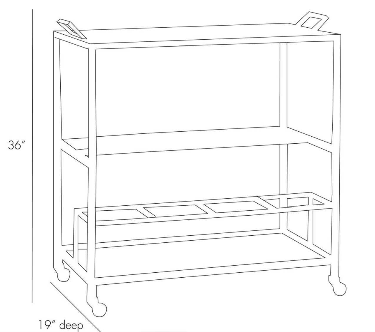 Multi tiered antique brass bar cart offers extensive opportunities for styling. Perfect