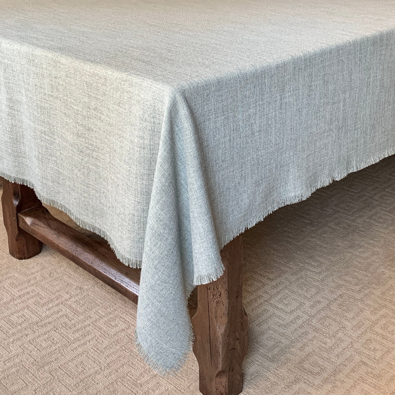 The art of table setting starts with the texture of a heather linen table cloth. Designed with an ideal drop of 10" - 12", for the perfect proportion of tabletop height to chair seat height with no overflow on the seating area. Finished with an artisanal hand fringed edge that will add a relaxed and sophisticated look to your table. Available in 15 colours.