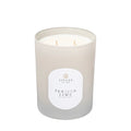 Hand-poured in a light-diffusing gray glass vessel, it features two double cotton wicks for an even, clean burn.