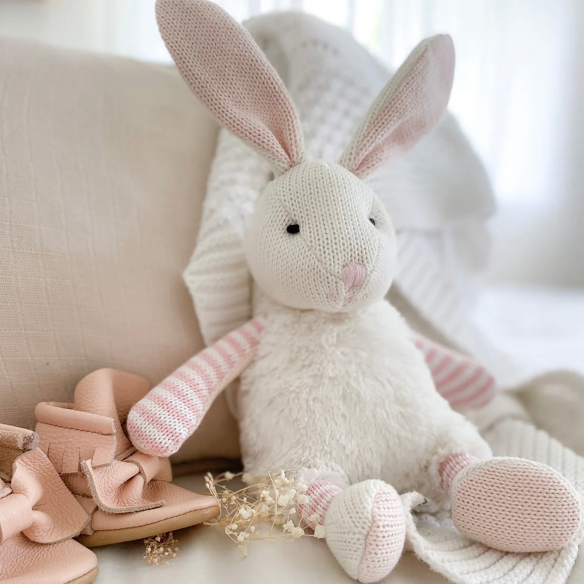 Talk about irresistible! Ultra-cuddly and cute-as-can be, this bunny stuffed animal is covered in the plushest faux fur with striped arms and legs for a playful touch.