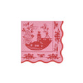 Add a graceful touch to your celebration with these elegant large paper napkins. Inspired by classic tableware, they feature a painterly bridge illustration and botanical flourishes in a bright berry hue, set against a soft hydrangea pink background. The wavy edge adds sculptural interest and refined detail.