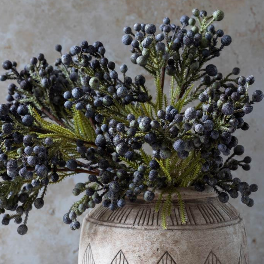 We love the textural beauty of these faux Brunia berry stems and the impact it has in flower gatherings. Just like a spice takes a meal to the next level, the Brunnia Berry adds a delightful layer to our flowers and foliage, and botanicals like this can be a gorgeous way to elevate your faux floral arrangements. With a double dose of texture from the way the berries contrast with the more textural stem, these artificial berries will be ones you will want to show off for years to come.