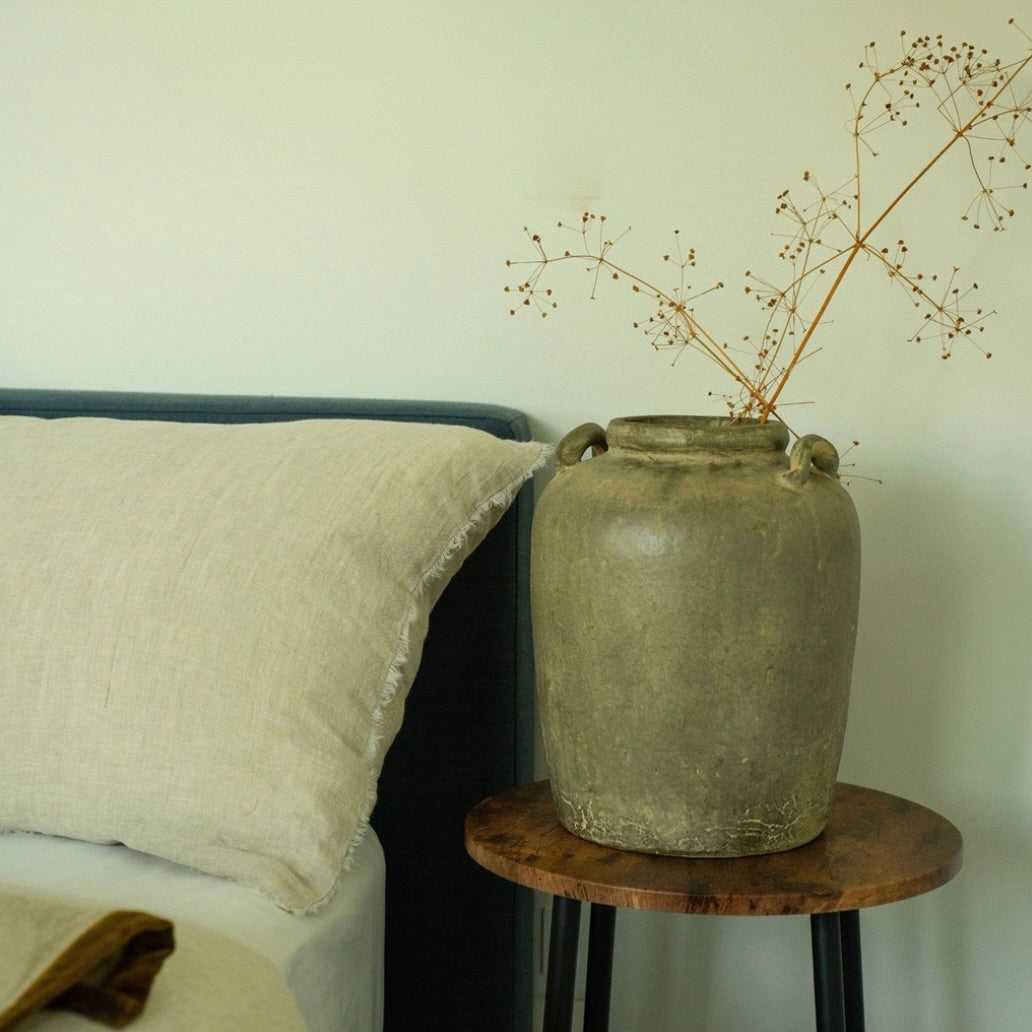 The Relic Urn exudes a vintage charm, giving the impression of a treasured heirloom passed down through generations. Each item will have unique variations due to the reactive glaze. Infusing warmth and character into your home, we enhance its timeless appeal by adding dried or faux flowers. Terracotta is porous by nature. To minimize perspiration, we recommend using a watertight vessel inside when styling with fresh flowers.