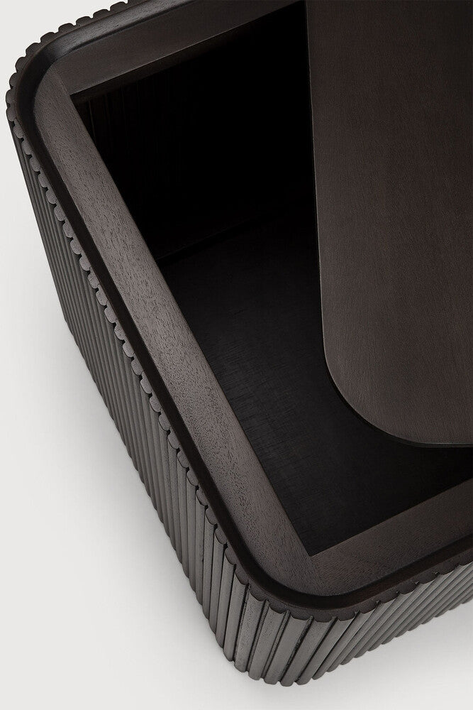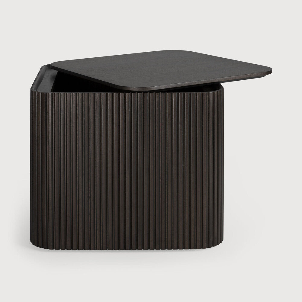 Designed by Jacques Deneef, this table is a clever multifunctional item that combines a side table with storage. Encapsulated in its stacked wood-stick effect, the tabletop can be easily removed to hide the newspapers, toys, cushions and throws from daily life. The perfect solution for smaller living.