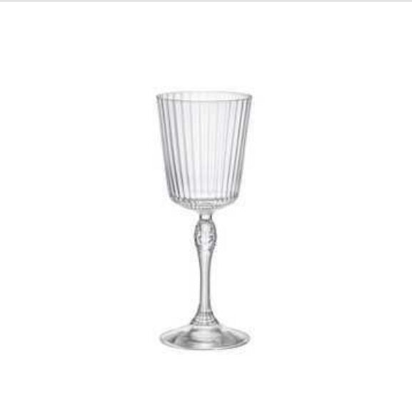 Crystal clear optic glass, with a sculptural stem and laser cut rim.