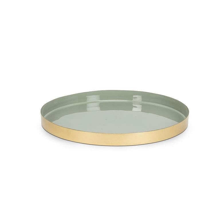 Sage Round Enamel Tray