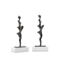 These abstract bronze-finished iron statues are influenced by the natural elements of the ocean. Our artisans sand-cast each piece giving the Spiral Statue an earthy texture and the shape of an eroded conch shell on the shore. A beautiful organic form that disappears over time but is rendered in a durable material to take on a more substantial presence. Its white marble base makes it perfect for display on your bookshelf, console, or in your home office. Sold in a set of 2, these statues will balance any living space gracefully.