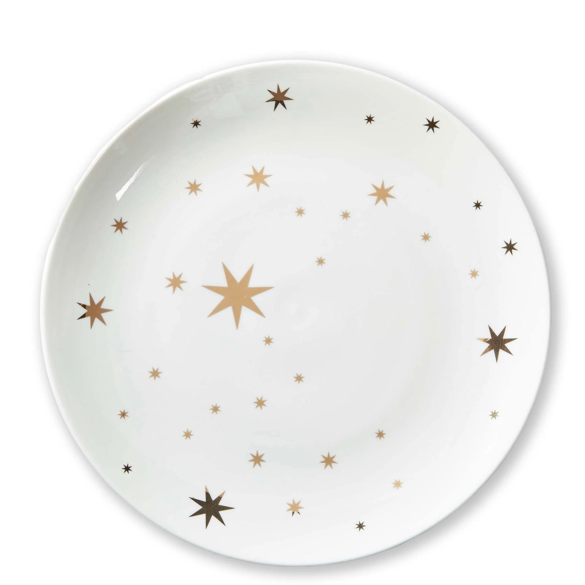 Elevate your dining experience with this stunning Starlight Round Platter. Crafted from fine bone china, this platter features a delicate gold design with subtle starlight accents. Perfect for serving special occasion meals or everyday dining, this platter adds a touch of elegance to any table setting.